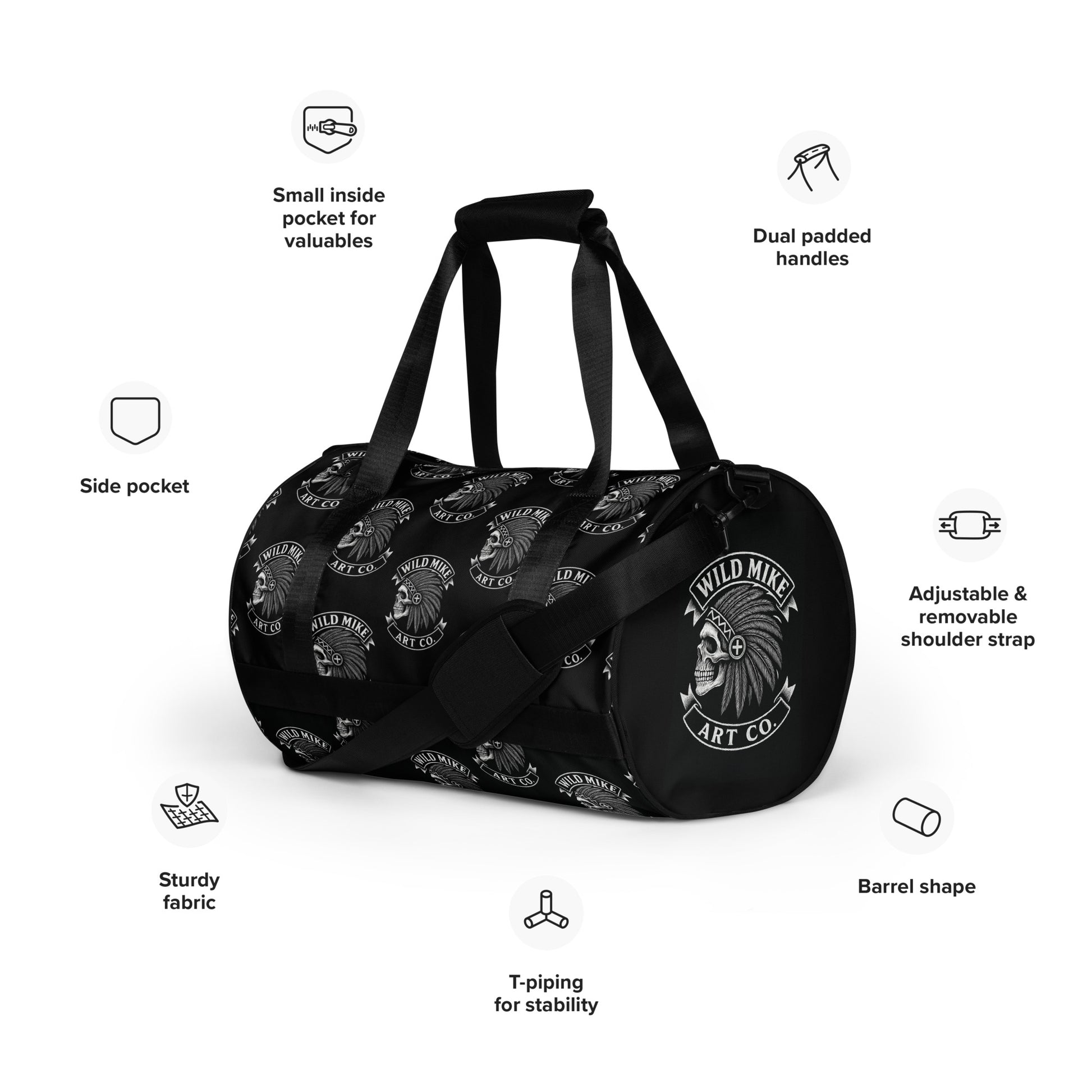 Ready to get your fitness on? Add some punch to pumping iron with this all-over print gym bag. Made from 100% polyester and sturdy, water-resistant fabric, this bag is fun meets function. And it’s got pockets!